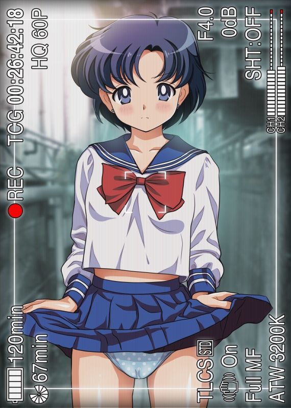 亜美は、男の言うことに従い、スカートを少しずつ たくしあげていった。 男の眼前に、亜美のショーツが顕になっていく。 俺 「おぉ〜!!絶景絶景!!女子●学生のおパンツ!しかもなんだ? 水玉模様じゃないか。しかしこれはこれでいいねぇ…、」 俺 (しかし、本当に言うことを聞くんだ…。 正体がバレる事ってそんなにこの娘には重要な事なのか) 俺 「でも、やっぱ俺、 セーラー戦士の姿の方が何倍もコーフンするんだよな…。 変身してみてよ!今すぐナウ!!」 亜美 (この場で変身させる!? やはり他に何か意図が有るのかしら…。 でも今はまだわからない) 亜美 「わかったわ…。マーキュ●ーパワーメイクアップ!!」 亜美は、その場で変身シークエンスに入り、 セーラー戦士へと変身を遂げた。 |
