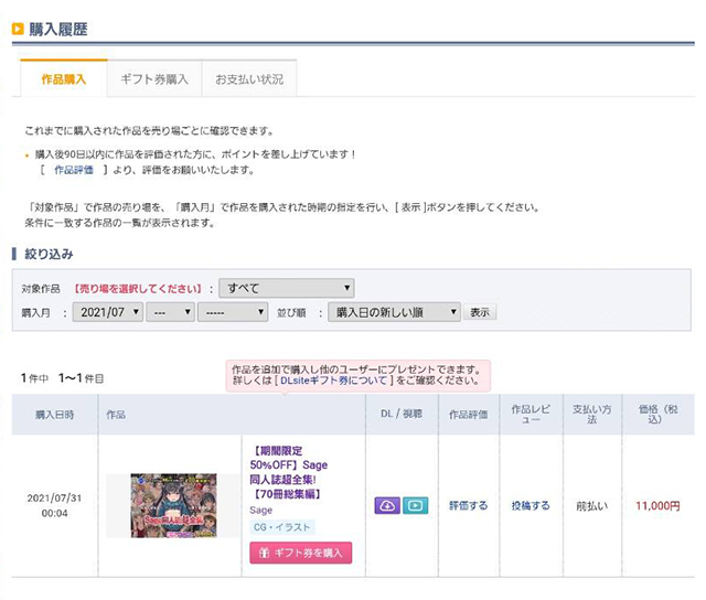 ・購入した『作品タイトル』と『日付』がわかる購入履歴画像を添付